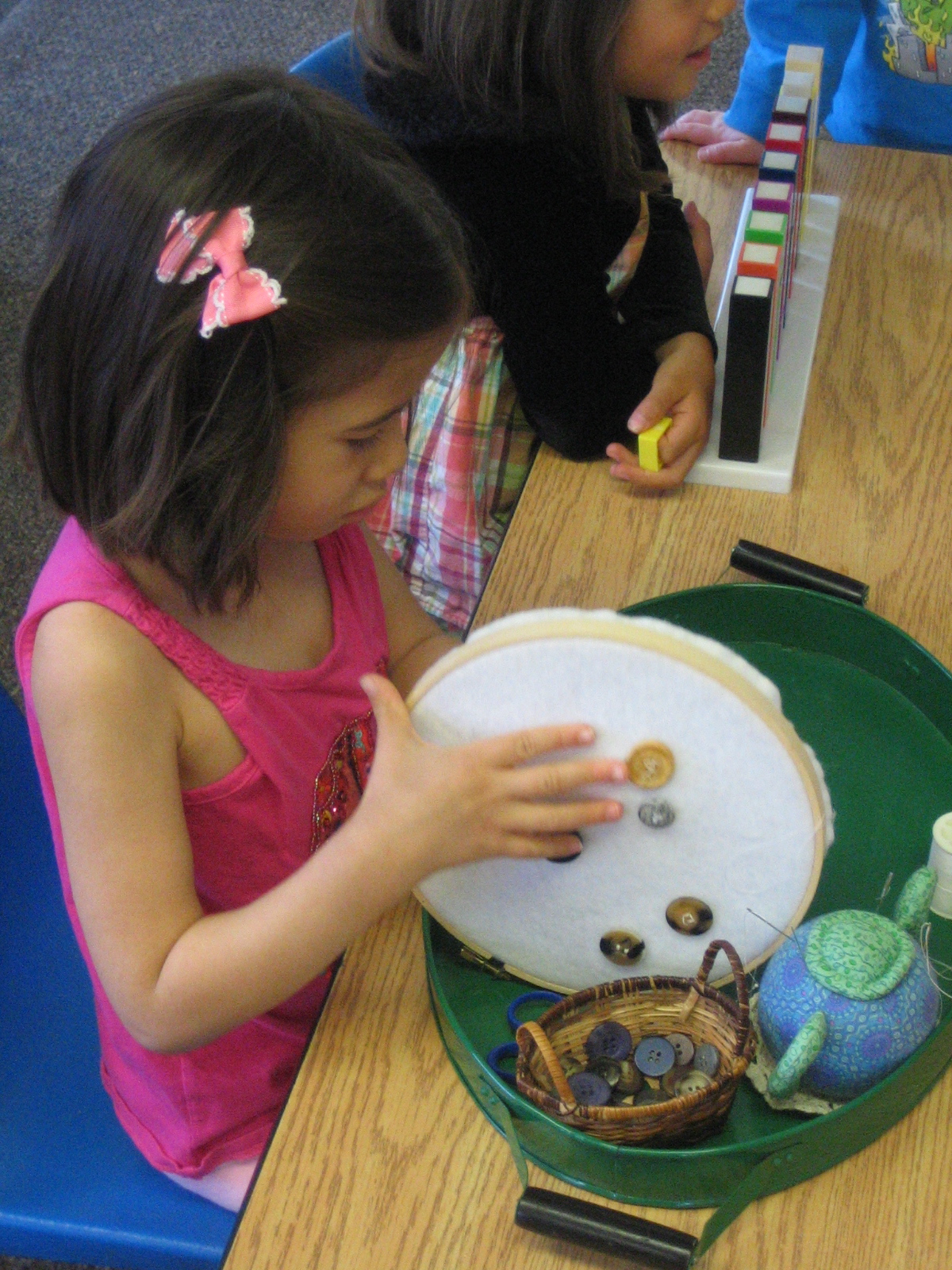 Boulder, CO — April 19, 2010 — The teachers at Countryside Montessori School are a talented team of educators who work with 40 3-6 years old in an all-day, all-year program. The whole group of children attend school together in a spacious and homey converted residence. All of the familiar practical life, sensorial, math, geography and language materials are on the shelves and in use throughout my visit. However, one object in the environment immediately caught my attention:
