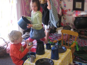 The teachers at Countryside Montessori have introduced many cultures to children. For each culture studied, the teachers and students work together to create a cultural environment that is available to the children throughout the day. This area is furnished collaboratively by the teachers and children. Much group discussion leads children to chose items to furnish this environment and they are able to use the environment to further their understanding of daily life in a culture different from their own. Here are some photos from the pioneer environment: